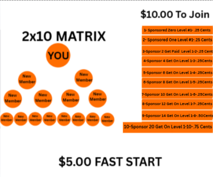 Answer- The 2×10 matrix Is fills through a combination of your direct referrals and Members activity above you. As more people join and the network grows, positions in your matrix can be filled by team growth — not just your own efforts.