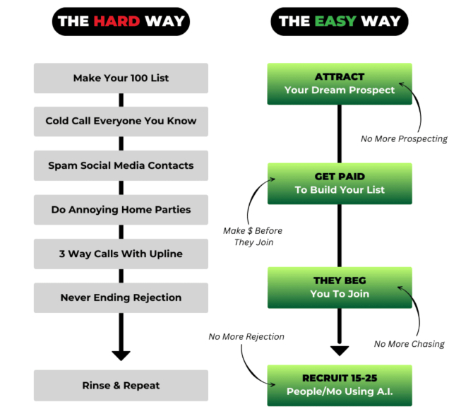 You’ll also be generating leads and building a list of qualified prospects who want to join – while positioning yourself in a way that allows you to recruit on demand with zero rejection…